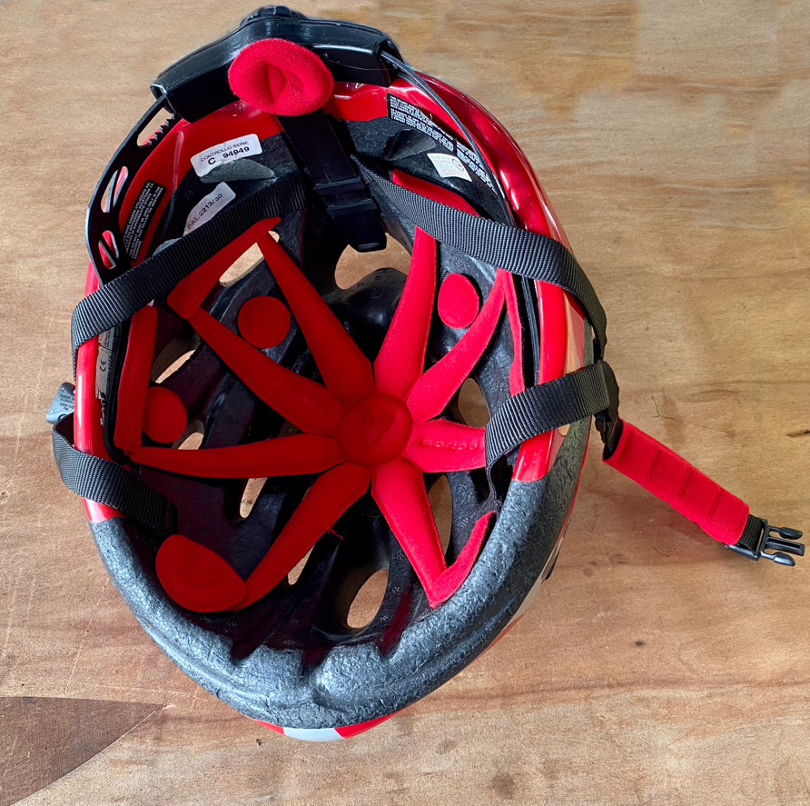 這頂安全帽雖然有些年紀,但是外觀結構依舊完好,主人捨不得換掉。