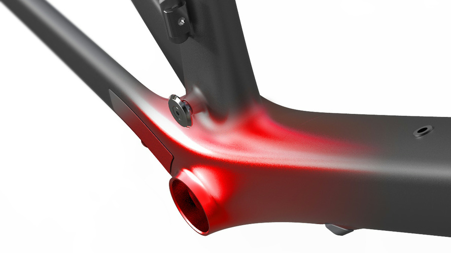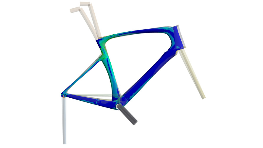 碳纖維擁有種類繁多的特性,硬度和剛性就是兩種非常不同的屬性,例如非常堅硬的纖維通常較不具備韌性,而HMX-SL和HMX所使用的高級數複合型碳纖維,達到了不可思議的輕量化,卻又具有絕對的強度。如HMX-SL採用MR70、YS60以及HR40碳纖紗,其中HR40是一種很強韌的絲線,與MR70合併使用後,達成了前所未有的抗拉伸強度。為了達成既定的剛性目標值,我們在疊層中加入了YS60,選定碳纖材料後,工程師們使用特別的工具,例如以FEA軟體畫出碳纖布的疊層,應用SCOTT獨家的EVOLAP科技,可以在虛擬的狀態中模擬不同的應力,並依此調整車架的結構。
