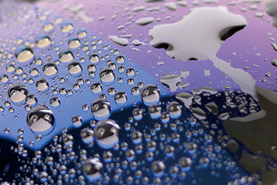 使用SR防污塗層水滴會形成圓珠狀,可以輕易從鏡片表面滑落。未使用SR防污塗層鏡面,水則會暈開於表面,容易造成視線模糊!