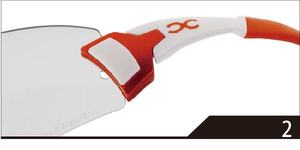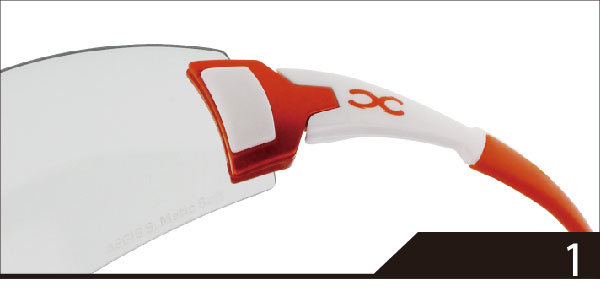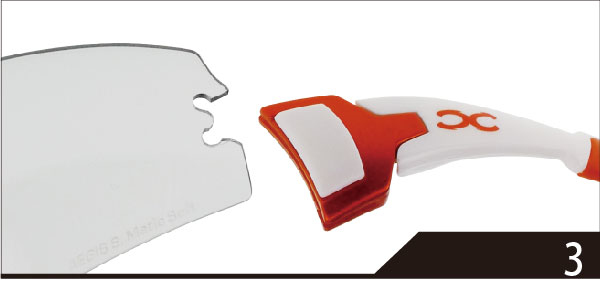 E-LOCK有別於傳統換片技術,創新的卡榫結構只需要簡易的三個步驟,能在短短幾秒內,就可以輕鬆完成換鏡片的動作, E-LOCK換片方式手指是不需碰到鏡片表面,就能避免在鏡片表面留下指紋的困擾,省去換片後還需清潔鏡面的麻煩。