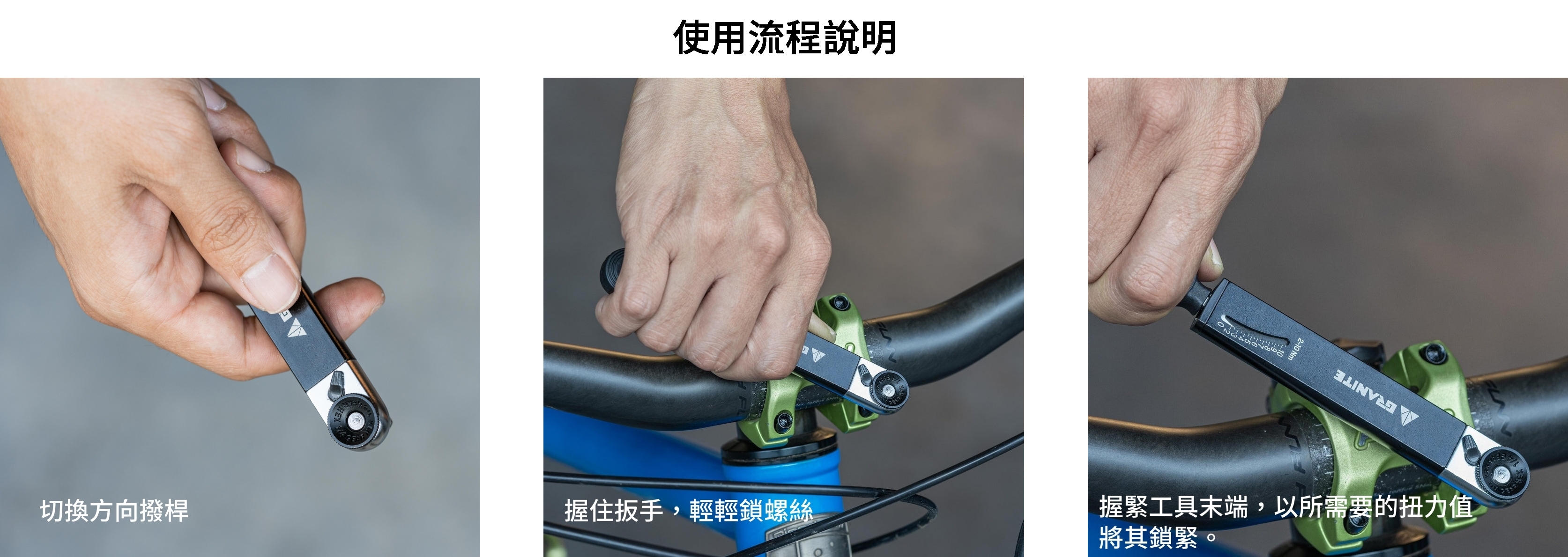 『搖滾TQ』 棘輪型扭力扳手工具組是一款精密且輕巧的棘輪型扭力扳手工具組,適用於公路車、瓜佛車及登山車。小小一個收納袋,配備了10多項必備的工具頭,包含了棘輪工具、延長轉接套筒。扭力值可從2Nm到10Nm精確調整,如果騎行時遇到狀況,就能即時處理!搭配Granite 『搖滾』自行車工具綁帶固定在車架上,既輕盈又好攜帶!