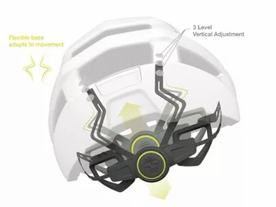 旋鈕式。 可精準微調。 易於操作並調整出適合個人的舒適度。 輕巧柔軟的架構可將安全帽牢牢固定在適當的位置,而不會引起局部發熱或不適感。 提供水平和垂直調整。
