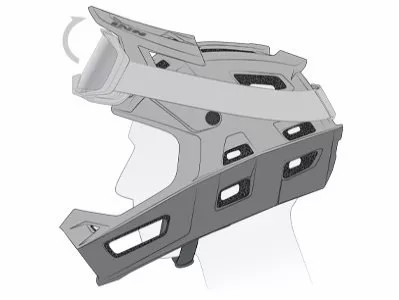 遮陽板三段式調整功能,針對越野風鏡使用者設計。不使用風鏡時有位置可以放置。