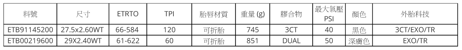 •加寬(WT)胎殼設計針對30-35mm內寬的內輪框進行了優化